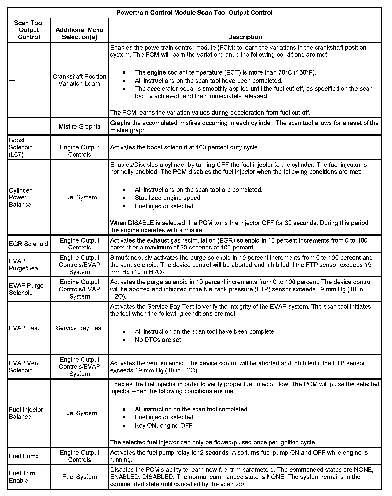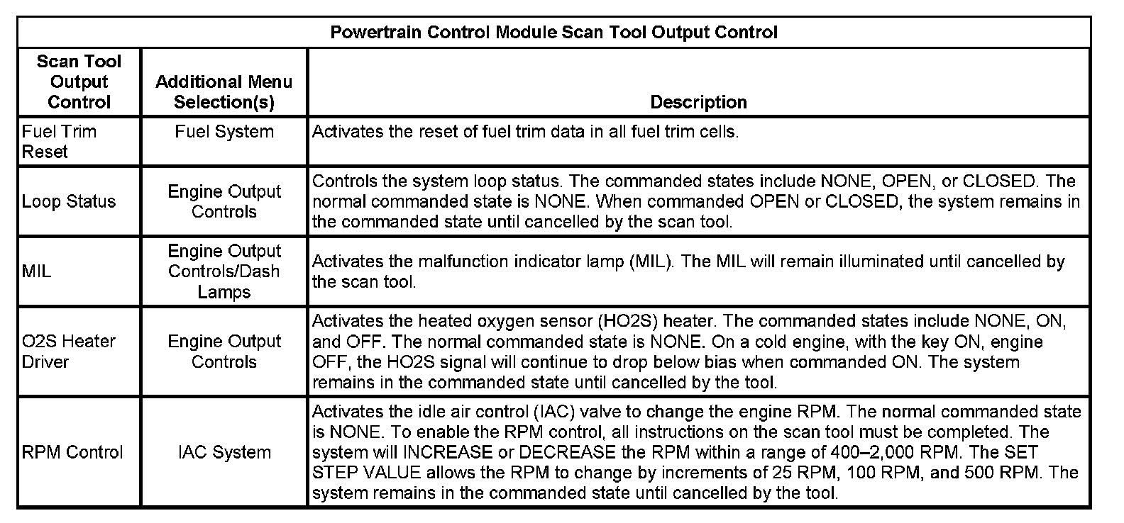 Powertrain Control Module Scan Tool Output Control Part 2: