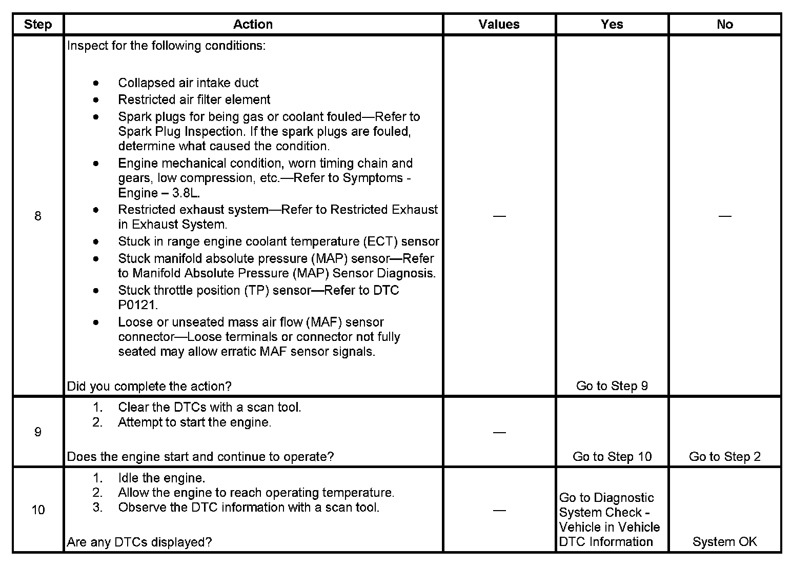 The Engine Cranks But Does Not Run diagnostic table is an organized approach to identifying a condition that causes an engine not to start. The Engine Cranks But Does Not Run diagnostic table directs the service technician to the appropriate system diagnosis.