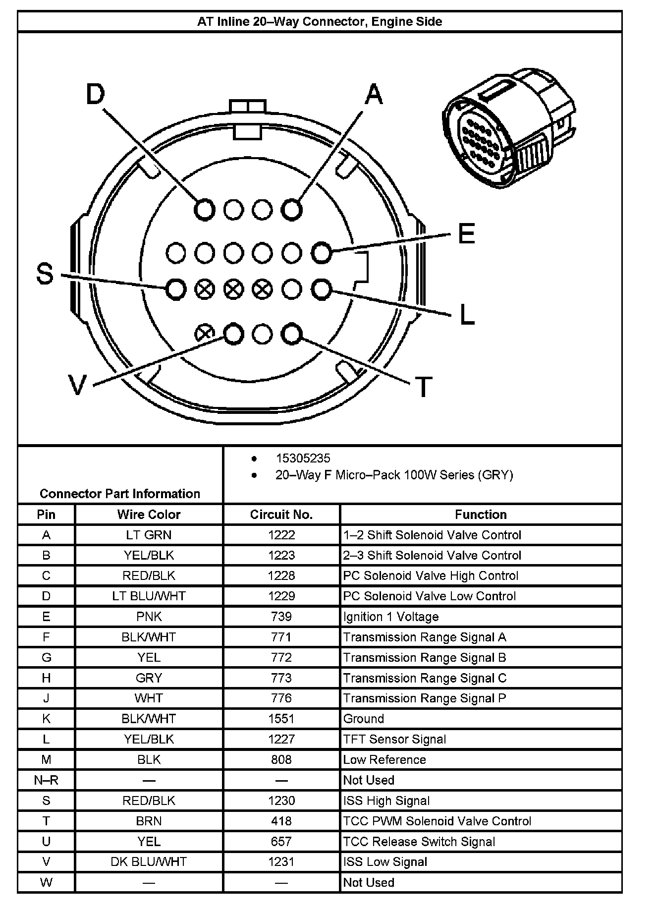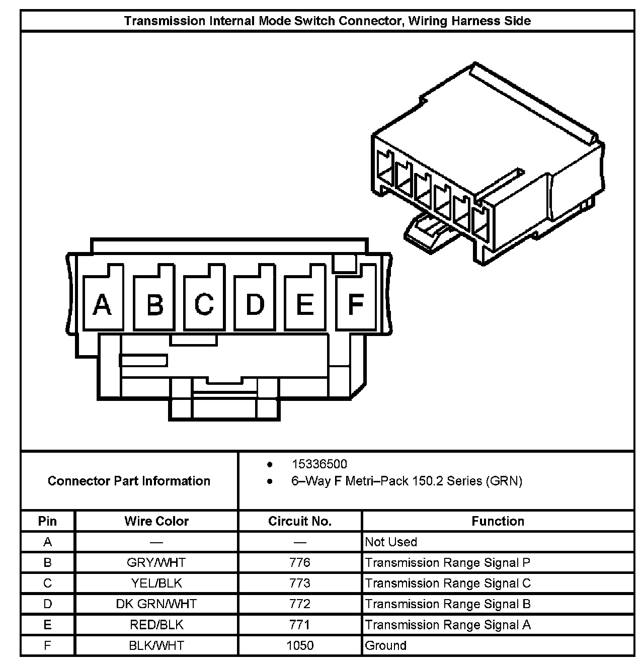 Transmission Internal Mode Switch Connector, Wiring Harness Side: