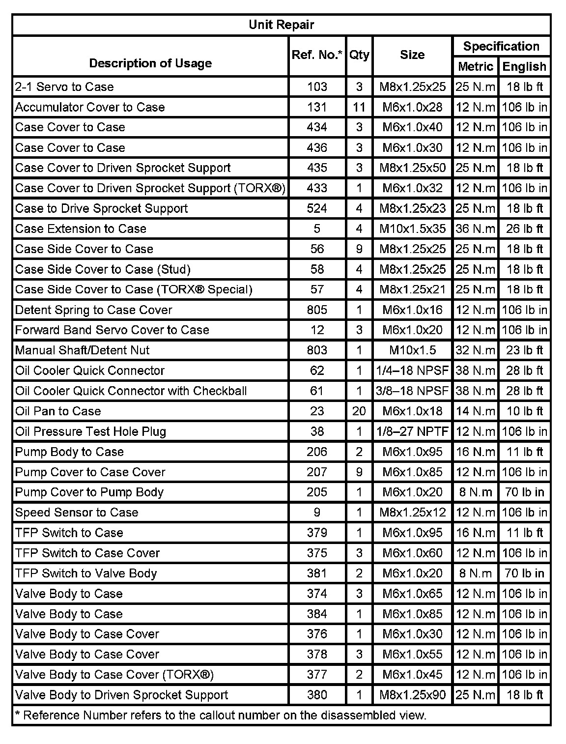 Fastener Tightening Specifications