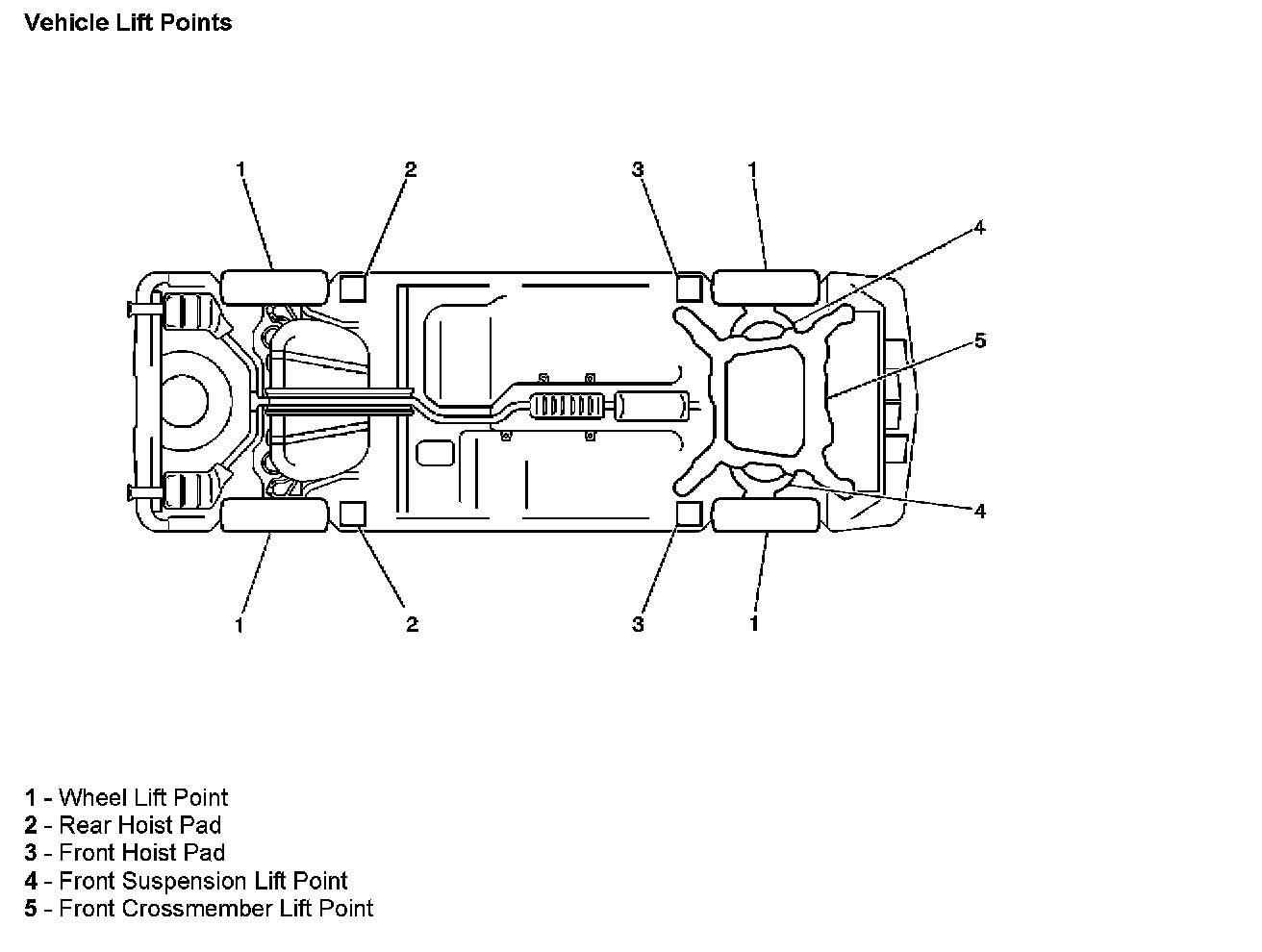 NOTE: When you are jacking or lifting a vehicle at the frame side rails or other prescribed lift points, be certain that the lift pads do not contact the catalytic converter, the brake pipes or the fuel lines. If such contact occurs, vehicle damage or unsatisfactory vehicle performance may result