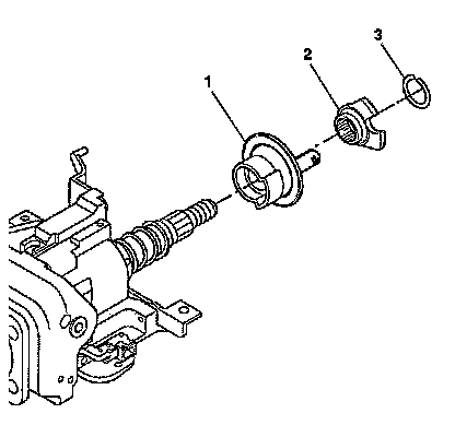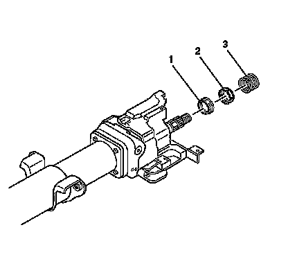 12. Pull the tilt arm in order to disengage the steering wheel lock shoes from the dowel pins (2) in the steering column support assembly.