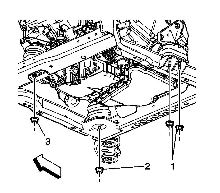 22. Remove the lower nuts (1-3) from the powertrain mounts.