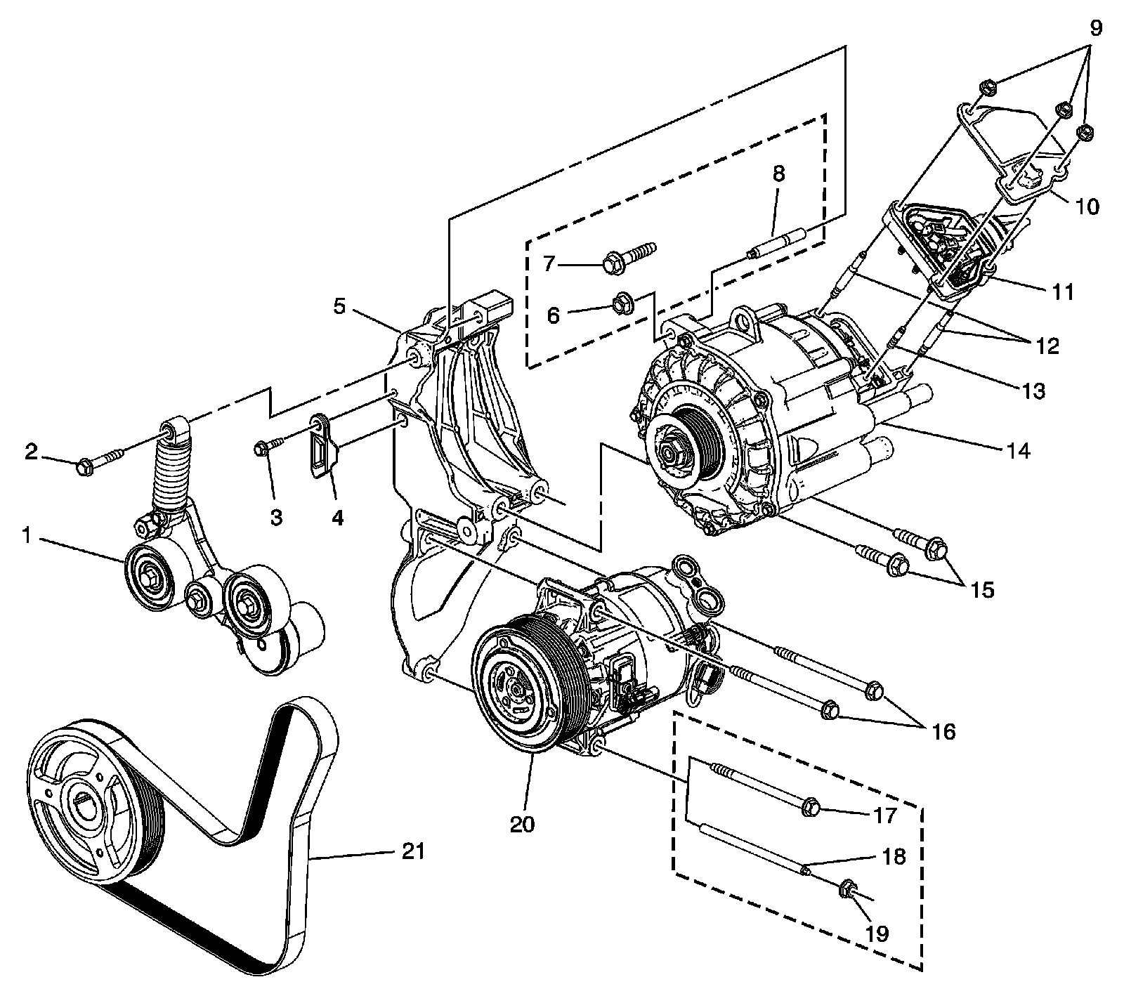 Starter Generator, Drive Motor Tensioner, Drive Motor Battery Cable, and Components