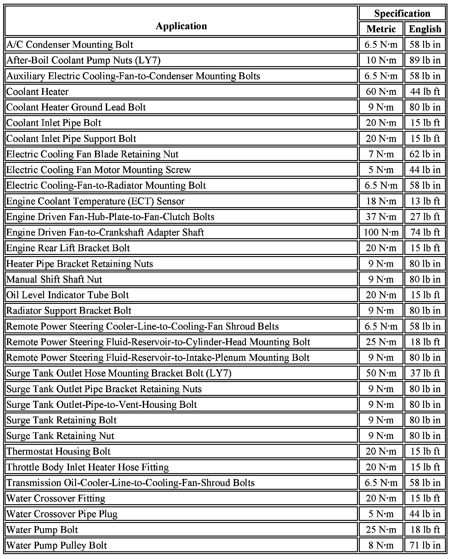 Fastener Tightening Specifications