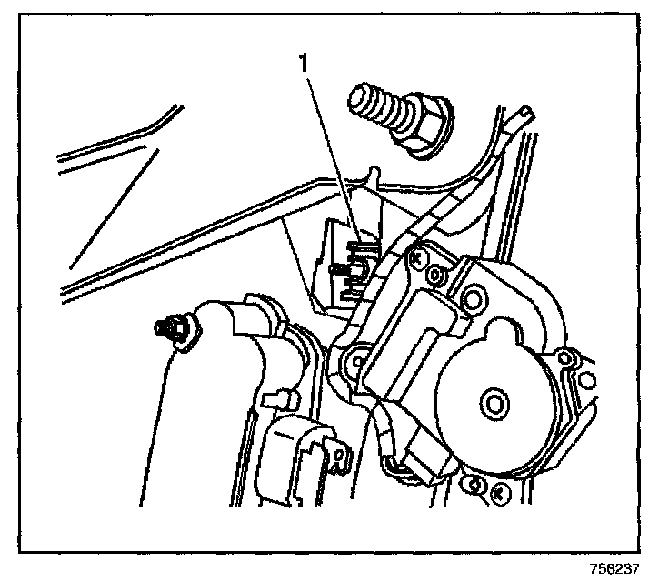 4. Install the upper left HVAC module mounting nut (1).