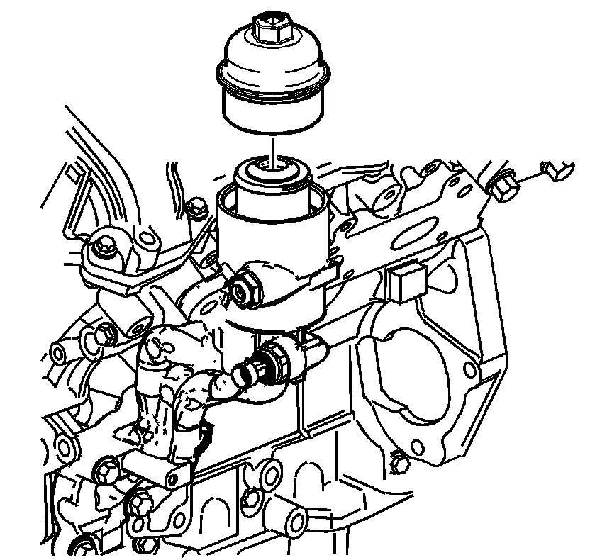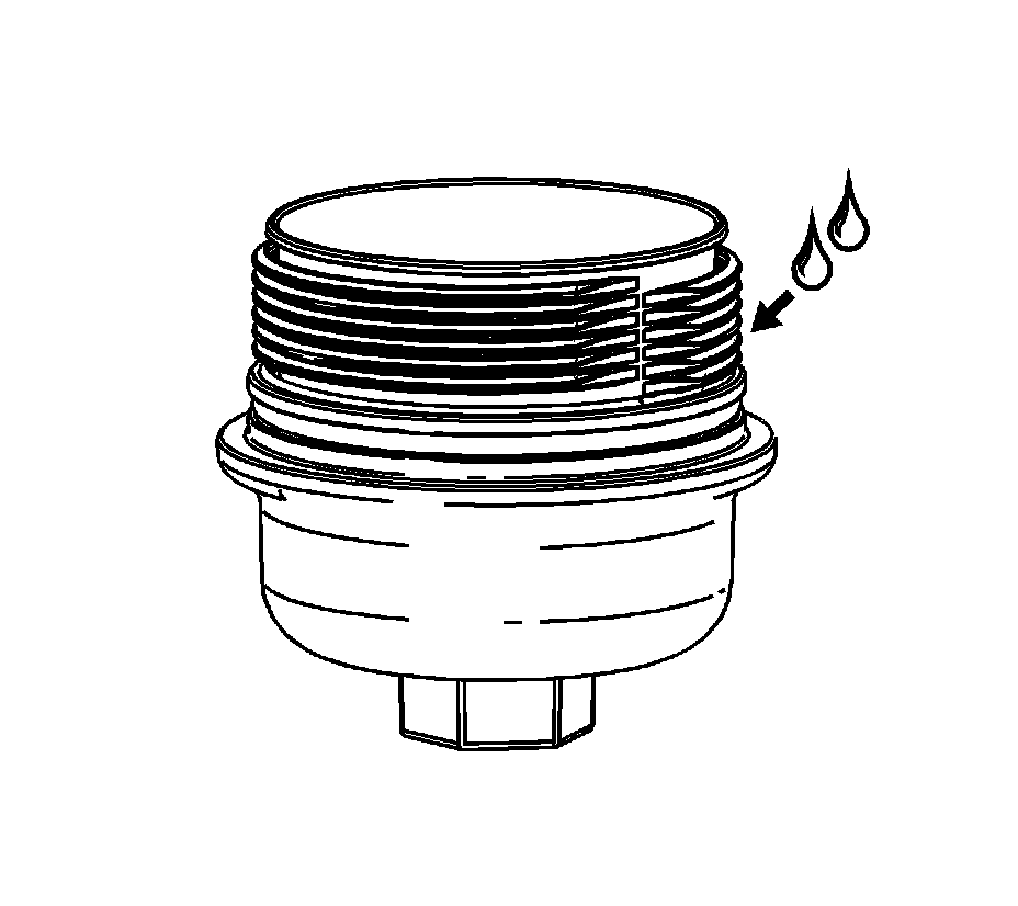 4. Notice: Lubrication must be applied to the threads of the oil filter cap prior to installation. Failure to lubricate the oil filter cap threads can hinder later removal and cause possible oil filter cap damage.