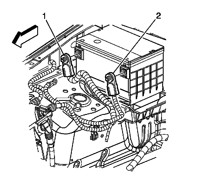 IMPORTANT: Ensure the openings in the heat shield are aligned with the battery terminal bosses.