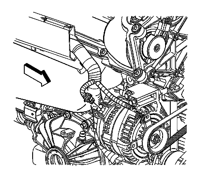 13. Lift the generator off of the mounting bracket in order to gain access to the connector and the generator output BAT terminal nut.
