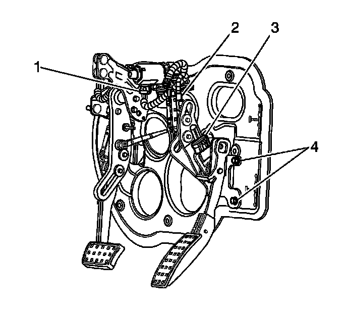 2. Remove the accelerator pedal assembly mounting nuts (4).