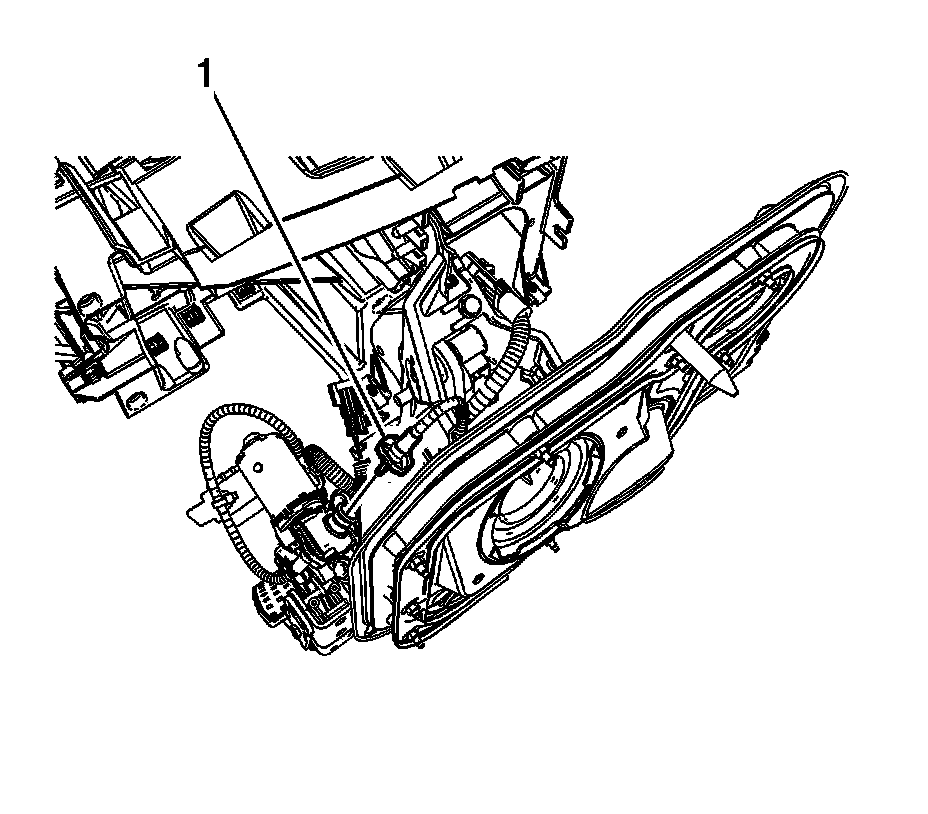 9. Carefully compress the brake pedal adjuster actuator cable collar (1) at the motor and pull the cable straight out.