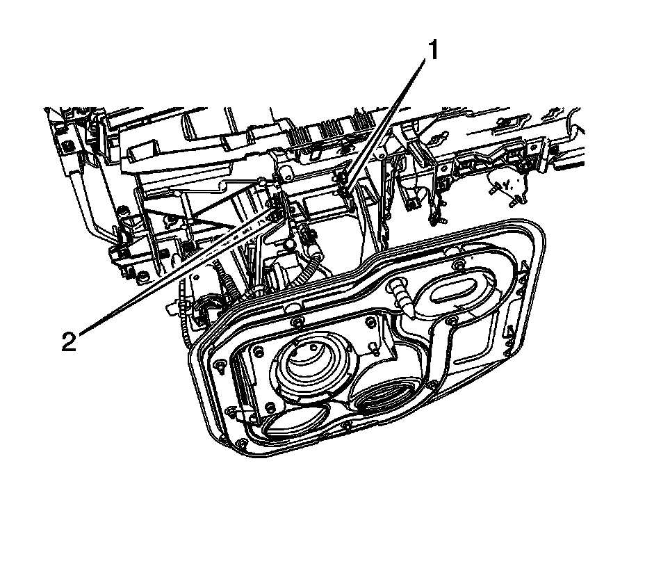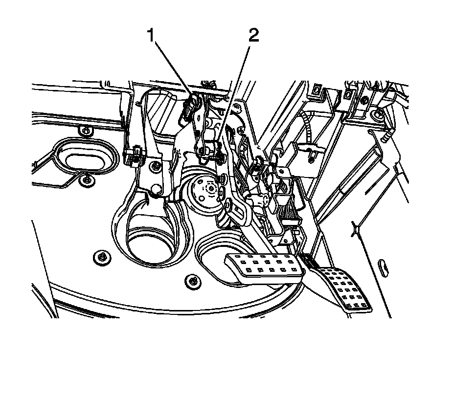 11. Remove the 2 upper brake pedal assembly nuts (2).