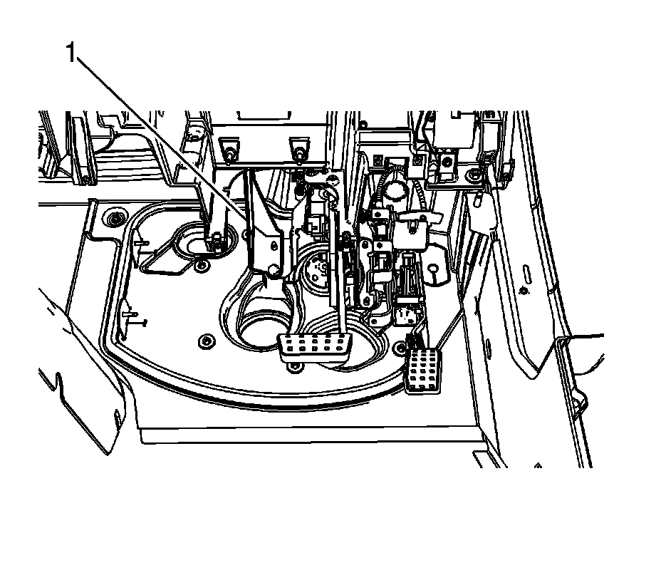 14. Install the 2 lower adjustable pedal assembly bracket nuts (1).