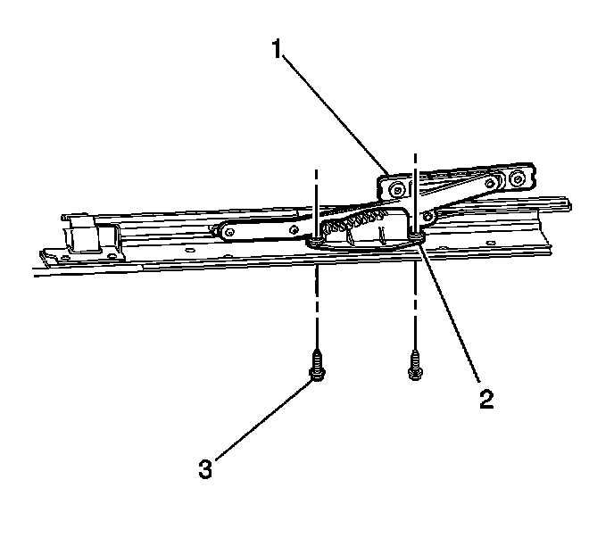 5. Remove the cam screws (3) and cam assembly (2) from the sunroof frame.