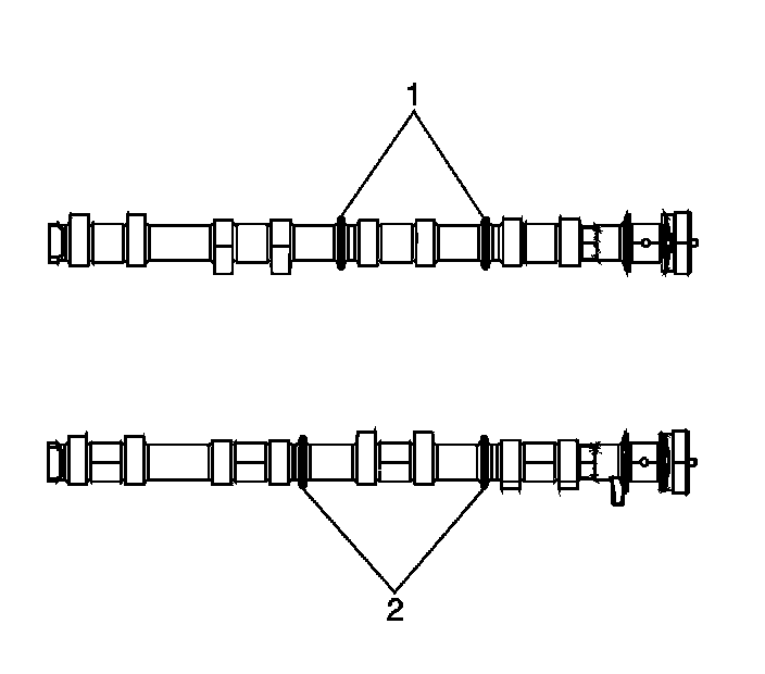 3. Select the proper camshaft by the identifying rings cast into the right intake camshaft (1).