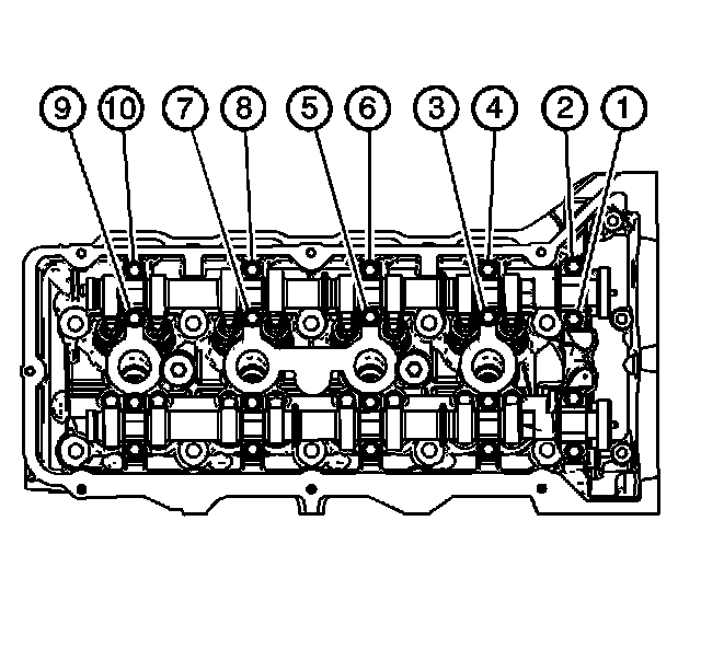Important: Ensure each valve rocker arm is properly aligned to the valve tip, the valve lifter and the camshaft lobe. Inspect the alignment prior to and after the camshaft caps are tightened to specifications.