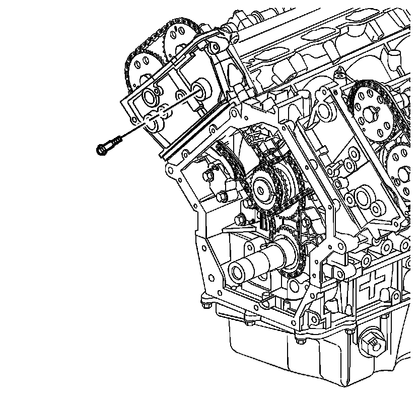 13. Install the upper right secondary camshaft drive chain guide bolt.