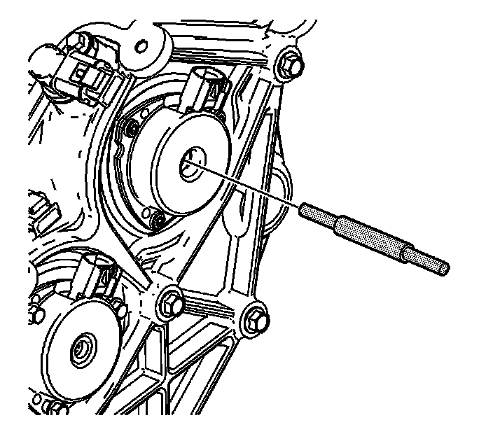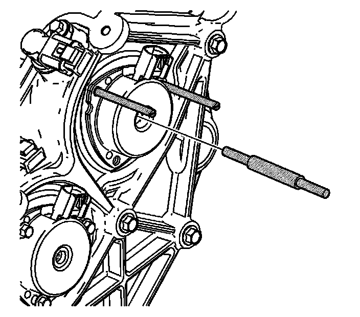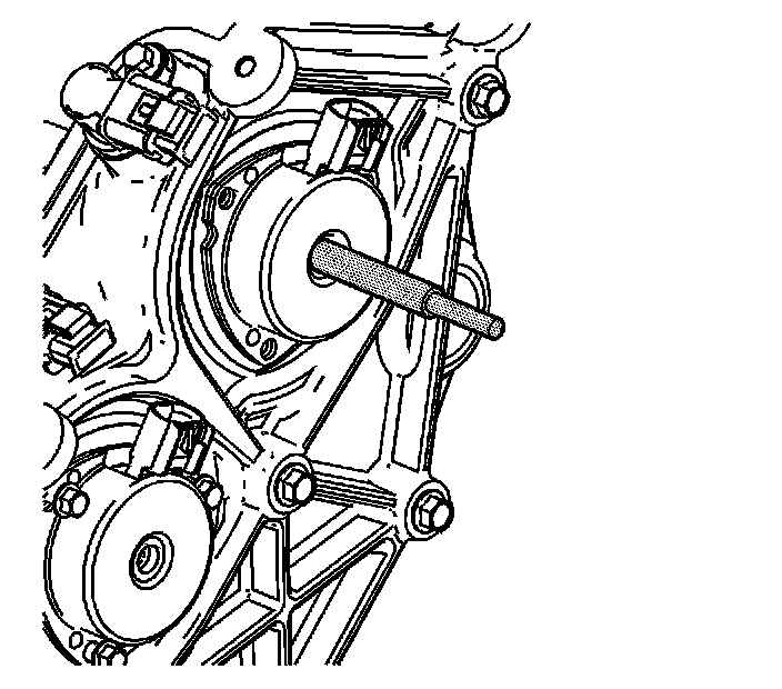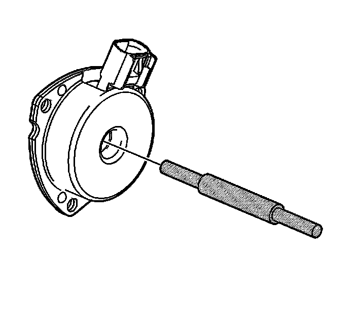 14. In order to align the camshaft position actuator magnet to the camshaft position actuator oil control valve, install the alignment pin through the camshaft position actuator magnet and into the camshaft position actuator oil control valve alignment hole.