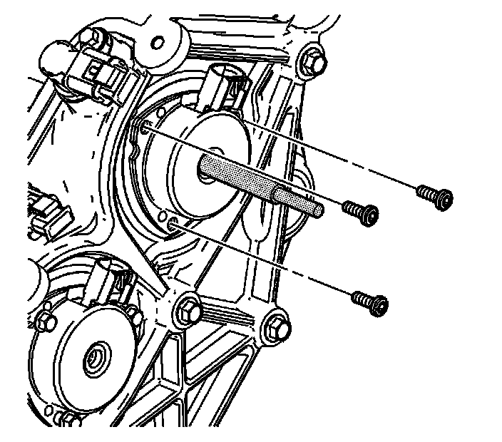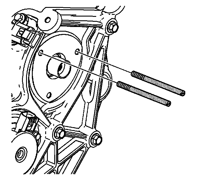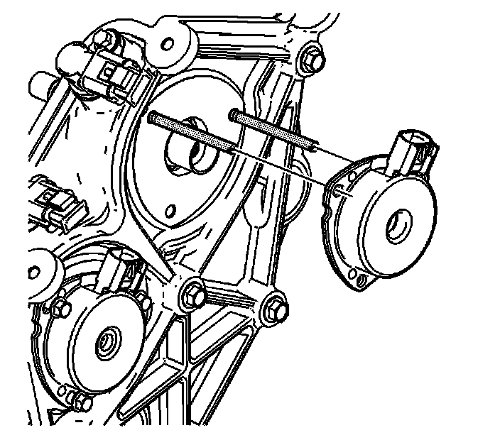 11. Install the 2 6 mm (0.236 in) loading pins in 2 of the camshaft position actuator magnet bolt holes in the camshaft position actuator housing.