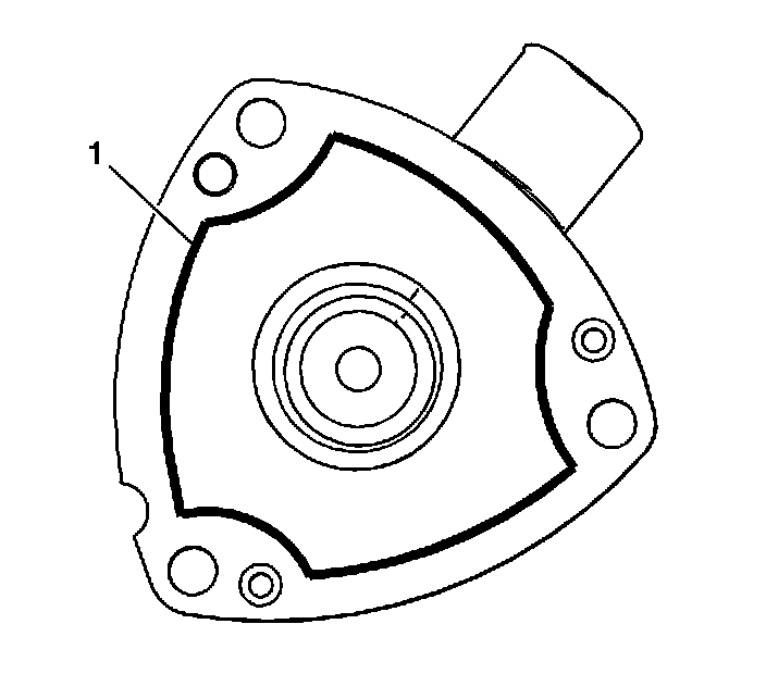 12. Apply a 2 mm (0.079 in) bead (1) of RTV sealant GM P/N 12378521 (Canadian P/N 88901148) or equivalent around the flange of the camshaft position actuator magnet as shown.