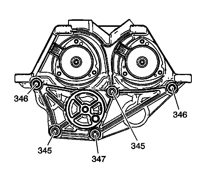 2. Install the left camshaft position actuator housing bolt (347), short studs (345) and long studs (346).