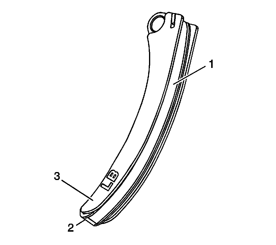 1. Inspect the primary timing chain tensioner for worn primary timing chain tensioner shoe surface (1).