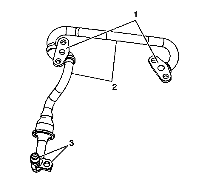 3. Inspect the oil pump outlet tube for distortion or damage to the pipe (3) and the bracket at the oil pump outlet end.