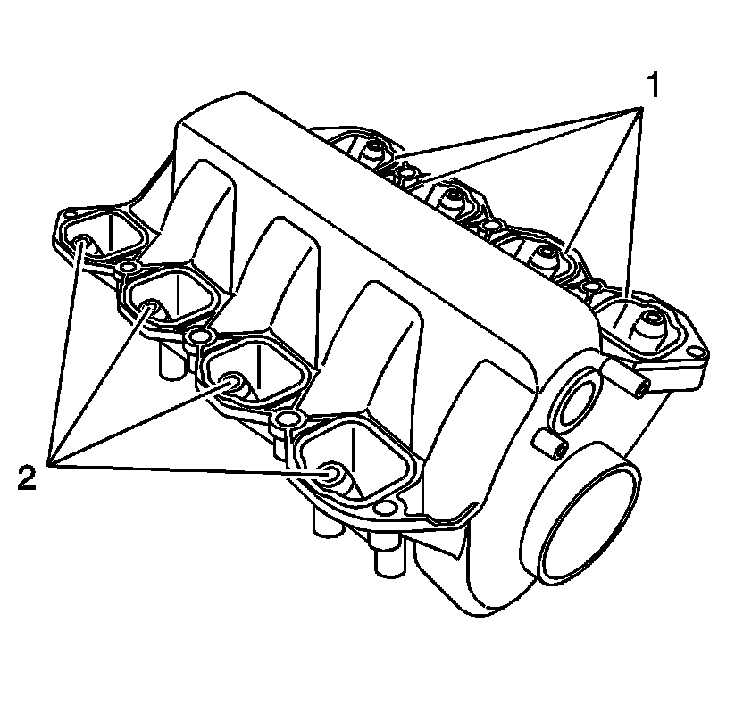* Damage, gouges or cracks to the intake manifold sealing surfaces and grooves (1)