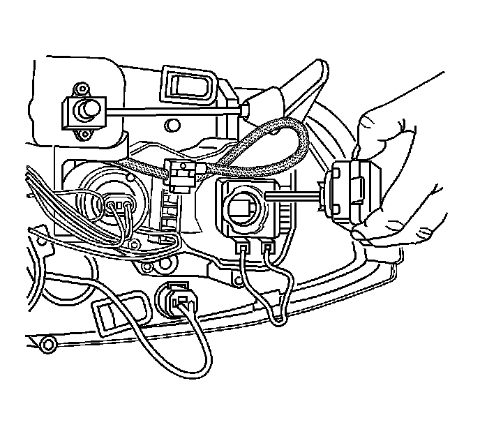 Notice: When removing or replacing the arc tube, the arc tube must not contact the side of the headlamp housing or the bulb shield. Damage to the arc tube may result.