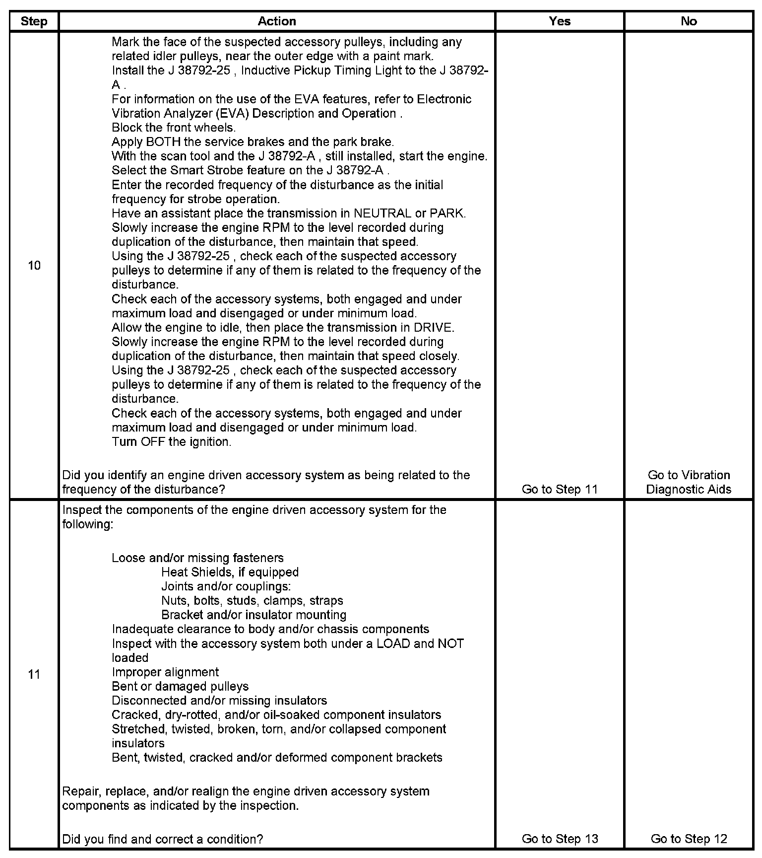 10. If the mark placed on the face of an engine driven accessory pulley seems to stand still while running this test, then that accessory system is either responding to an existing frequency, such as engine firing pulses, or creating a disturbance.