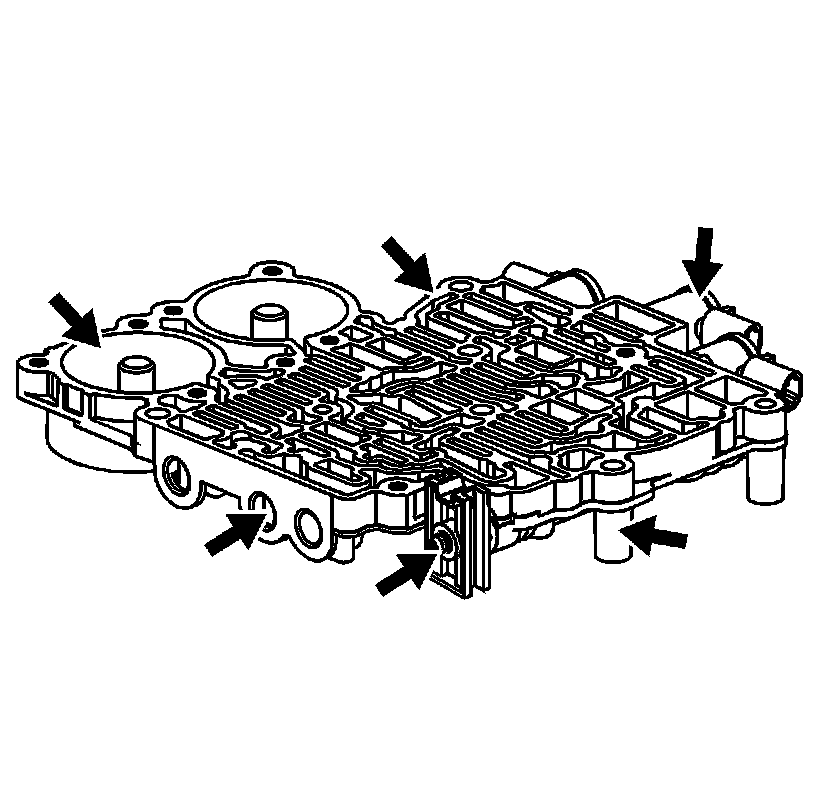 2. Use a small pick or screwdriver, before disassembly, to inspect the rear control valve body components for the following conditions: