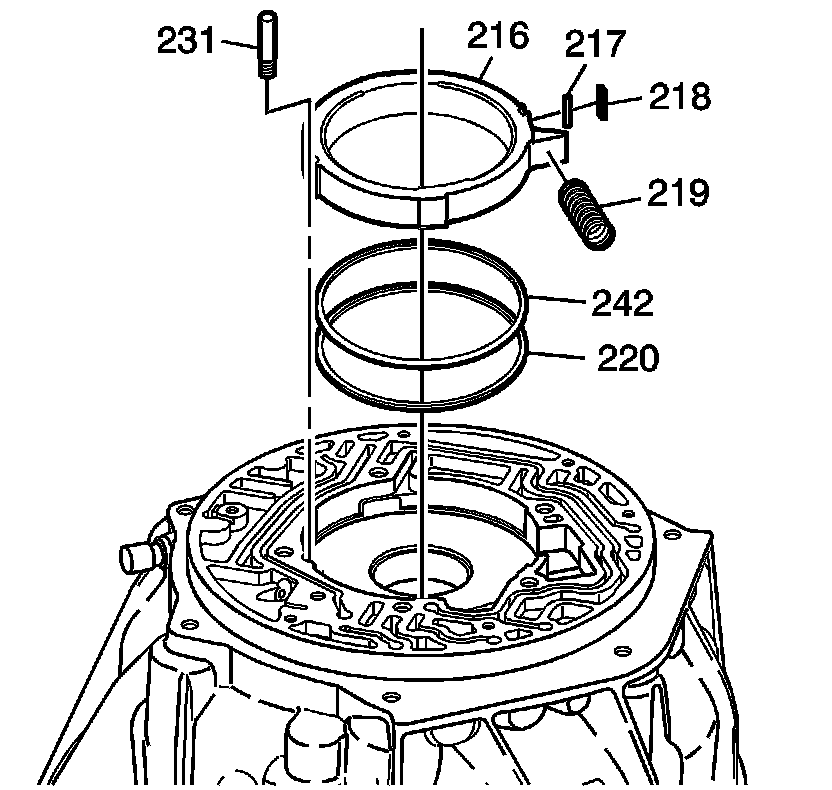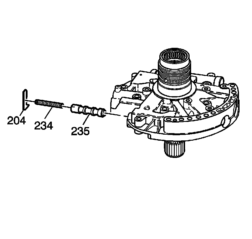 5. Install the TCC control valve (235) and the TCC control valve spring (234).