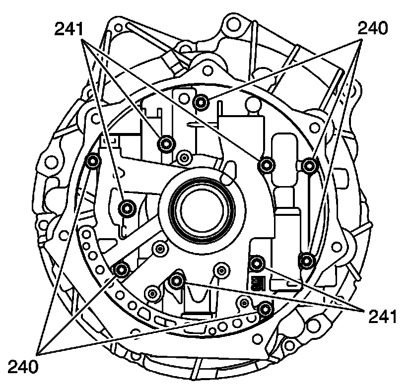 * Tighten the fluid pump housing bolts (240) to 11 N.m (8 lb ft).