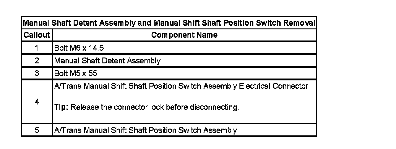 Manual Shaft Detent Assembly and Manual Shift Shaft Position Switch Removal
