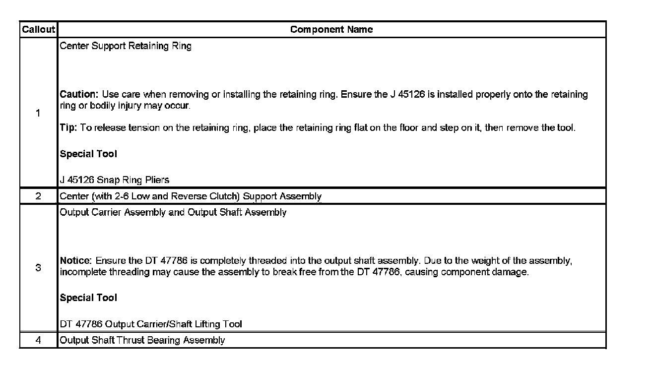 Center Support, Output Carrier and Output Shaft Removal (6L50)