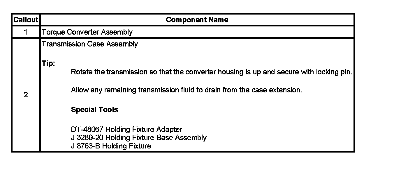 Torque Converter Removal and Holding Fixture Installation (6L50)