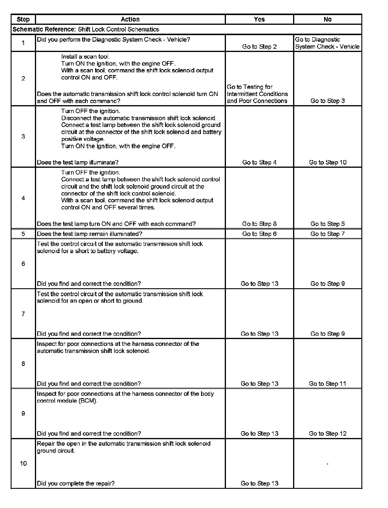 Shift Lever Does Not Move with Brake Pedal Depressed