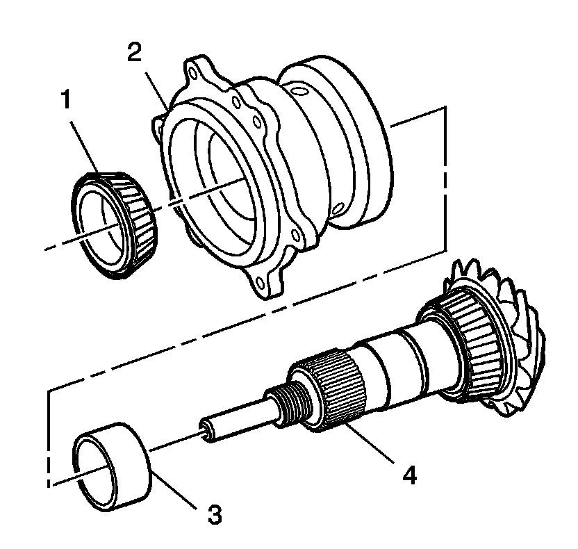 2. Assemble the pinion shaft (4), the housing (2), the spacer (3) and the bearing (1).