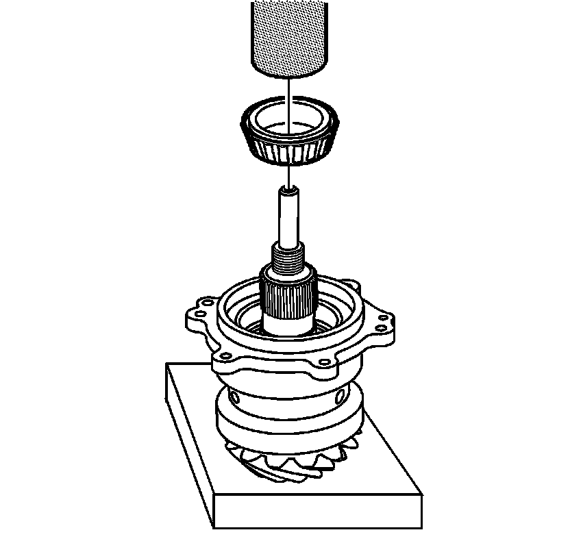 1. Install the pinion head bearing onto the pinion shaft using the J 24433 and a hydraulic press.