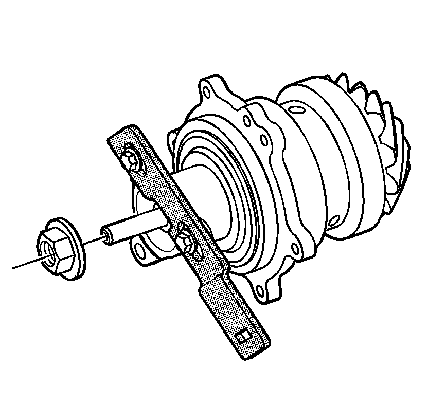 7. Apply threadlocker GM P/N 12345382 (Canadian P/N 10953489) to clean the threads of the pinion nut.
