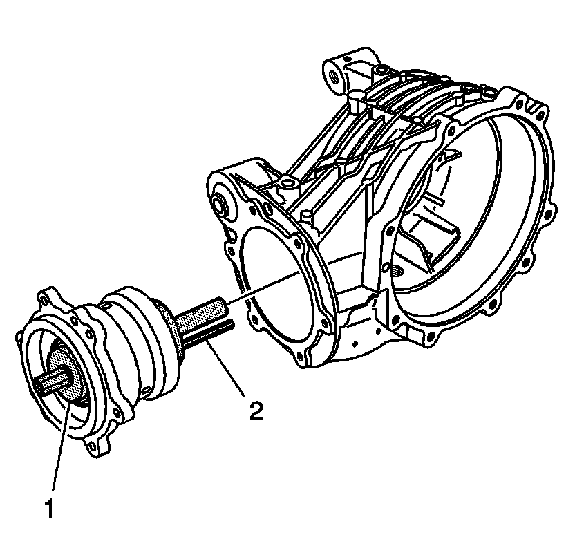 Important: When installing the pinion bearing housing into the carrier, ensure that the gage rod (2) does not hit the ribbing inside the carrier.