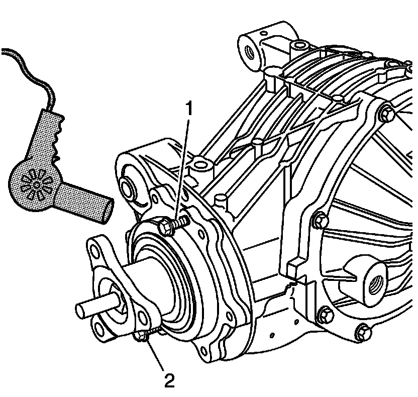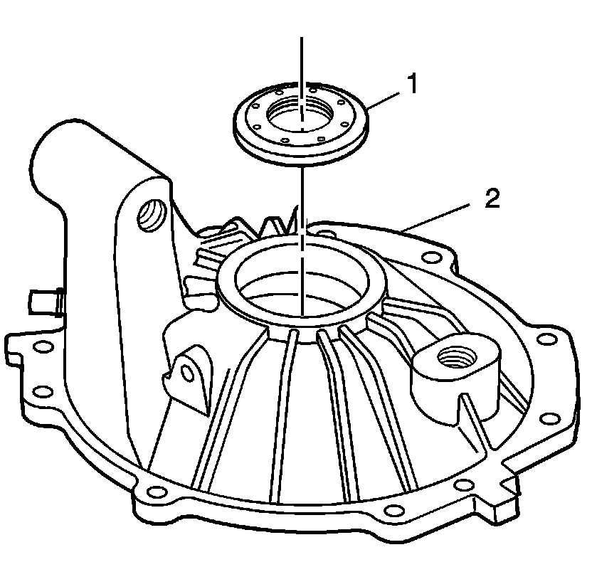 10. Remove the axle oil seal (1) from the carrier cover (2) using J 24433 and hammer from inside the cover.