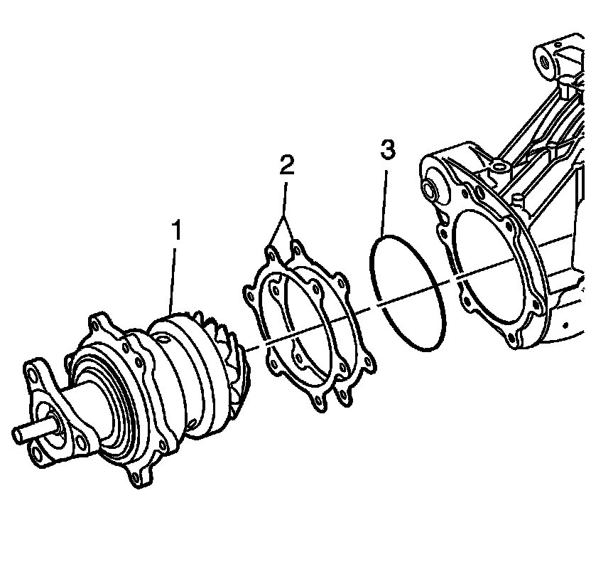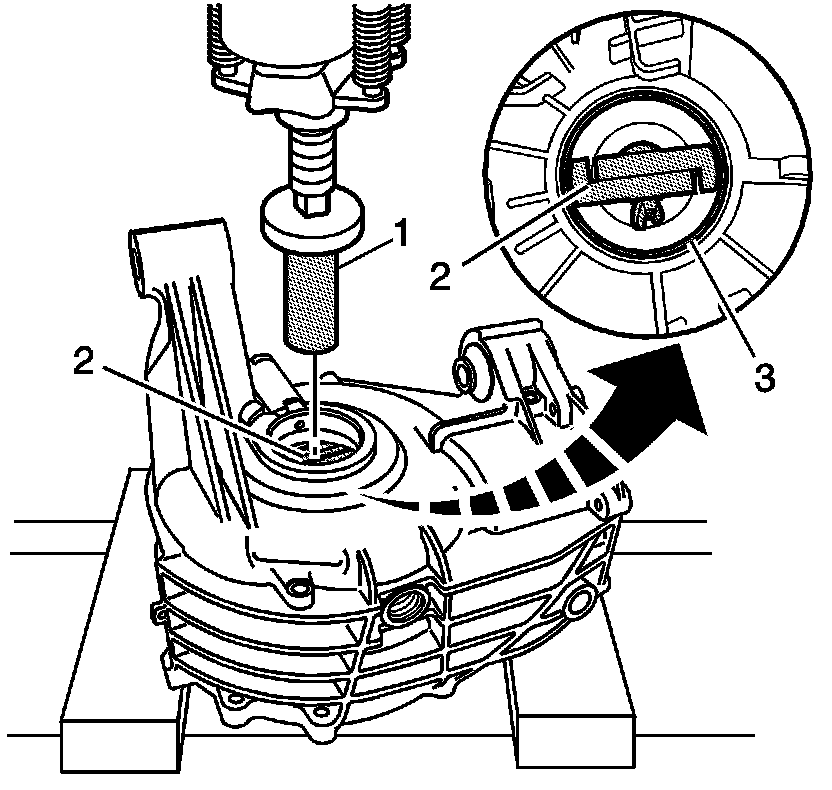 5. Remove the pinion cage assembly (1), shims (2) and O-ring seal (3) from the differential carrier.