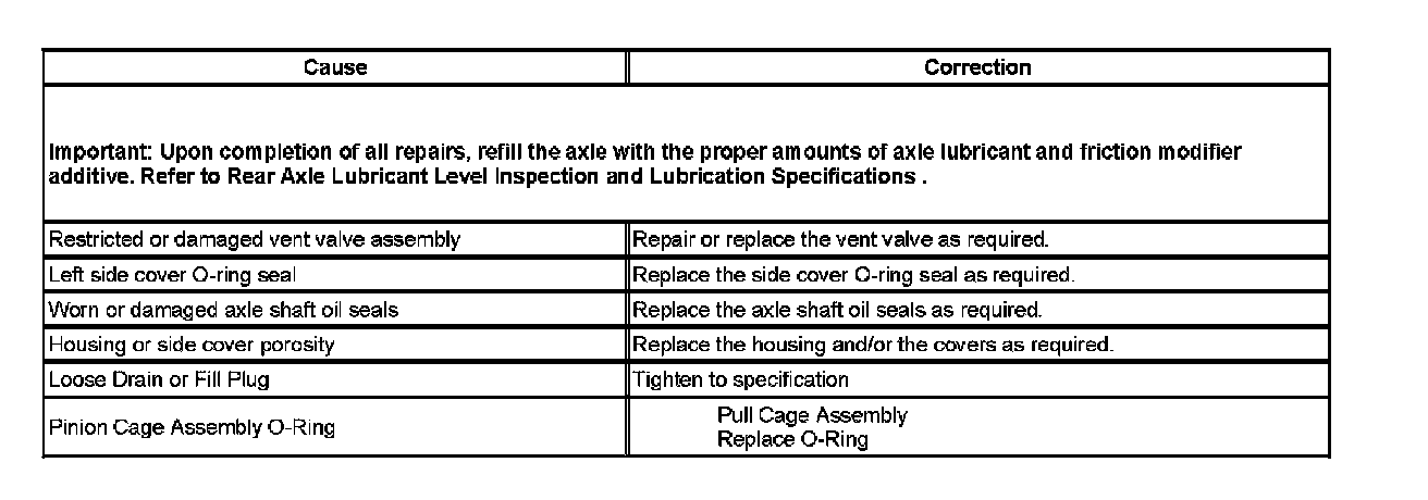 Rear Axle Lubricant Leak Diagnosis