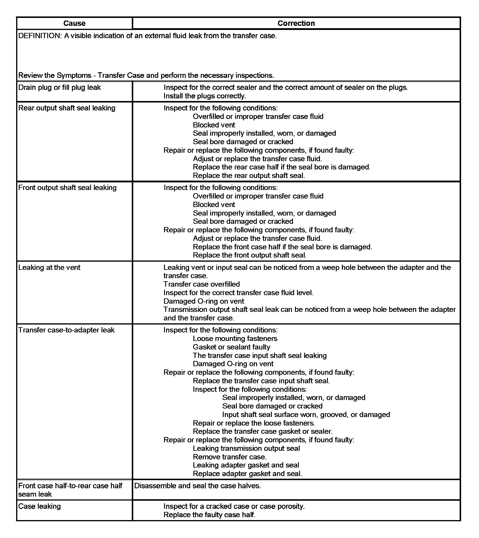 Transfer Case Leak Diagnosis: