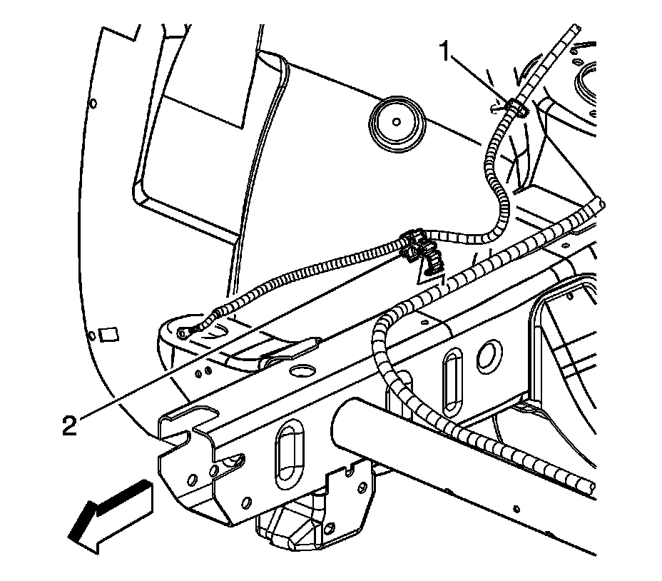 9. Remove the forward lamp wiring harness terminal (2) from the frame.