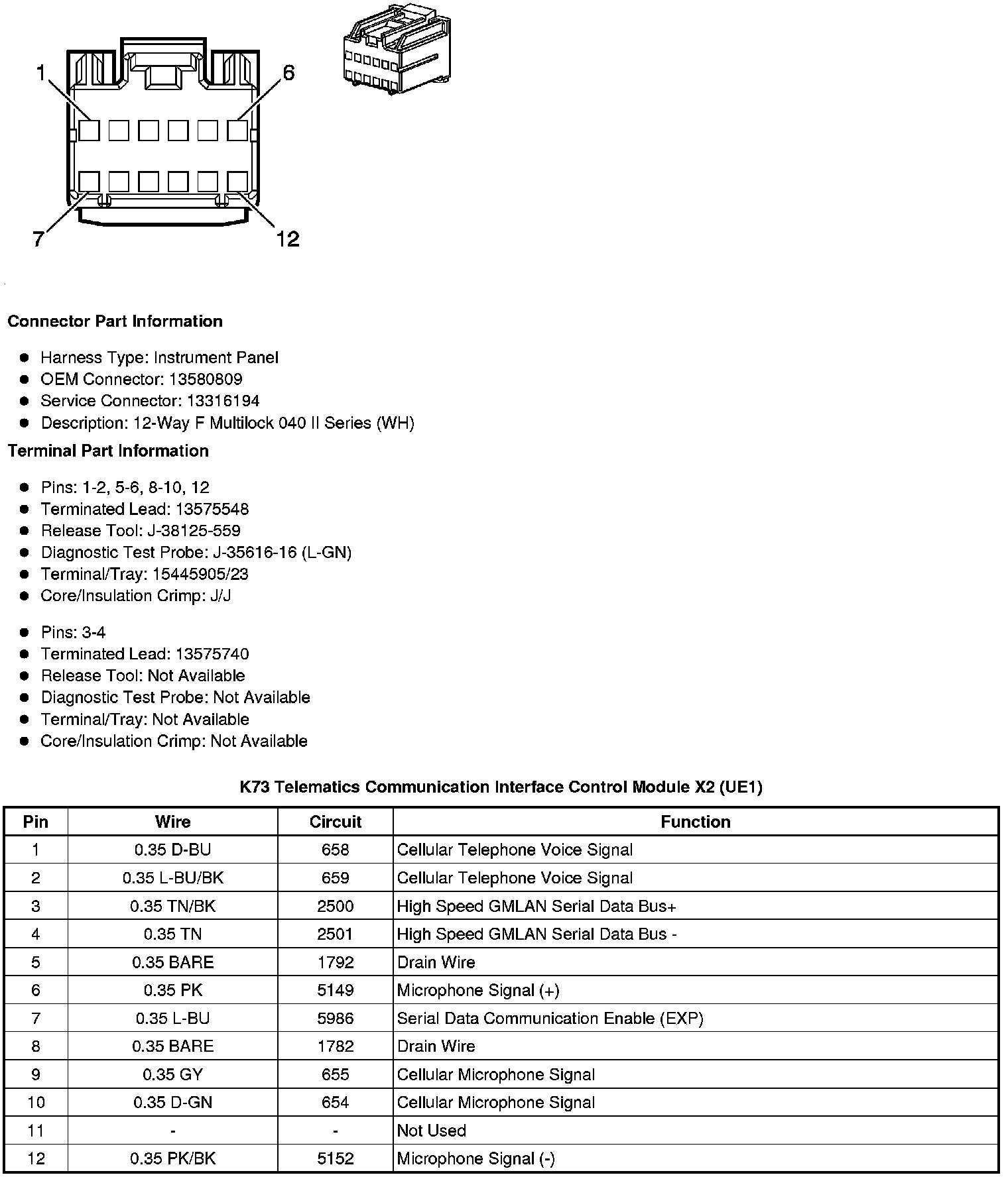K73 Telematics Communication Interface Control Module X2 (UE1)