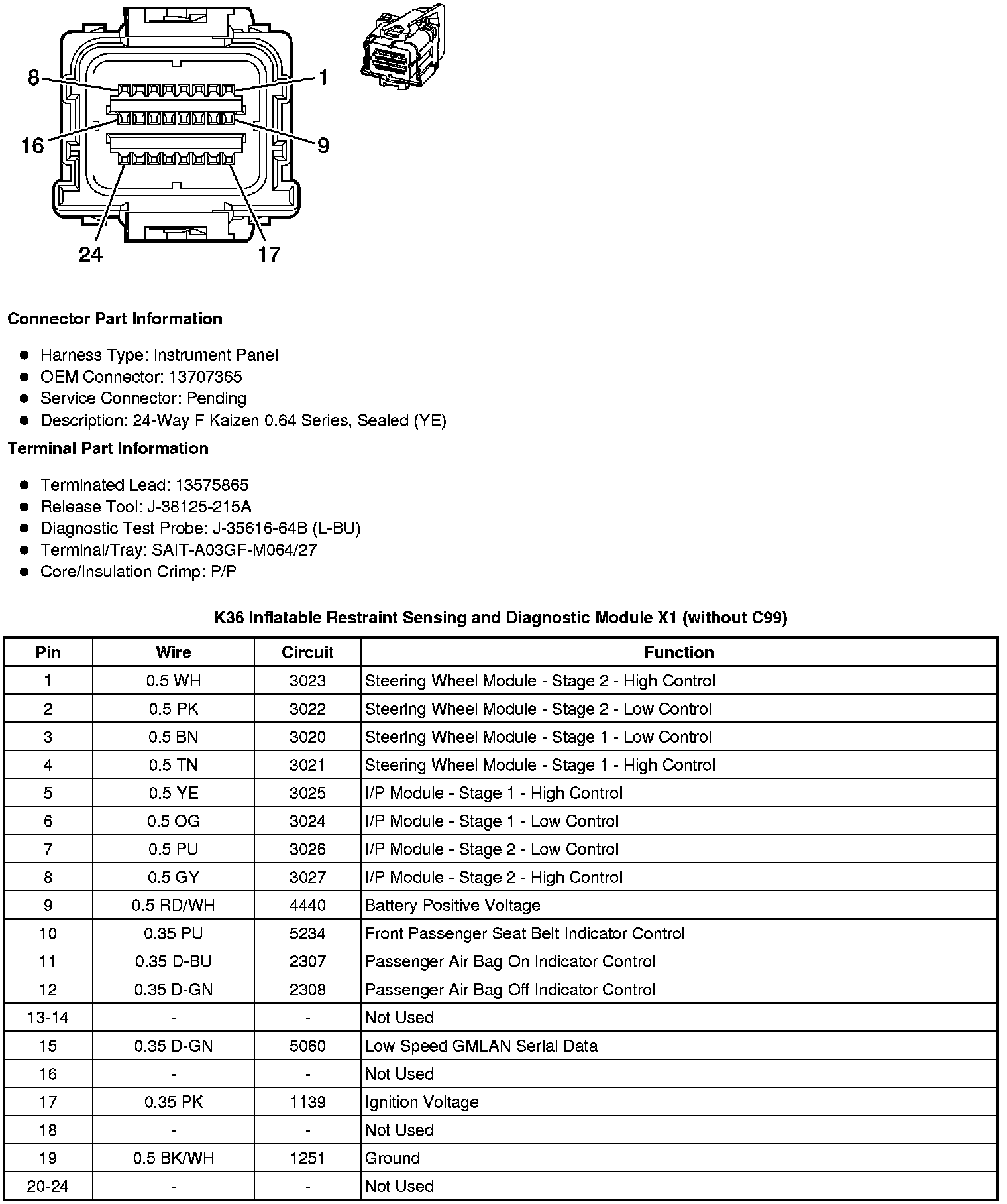 K36 Inflatable Restraint Sensing and Diagnostic Module X1 (without C99)