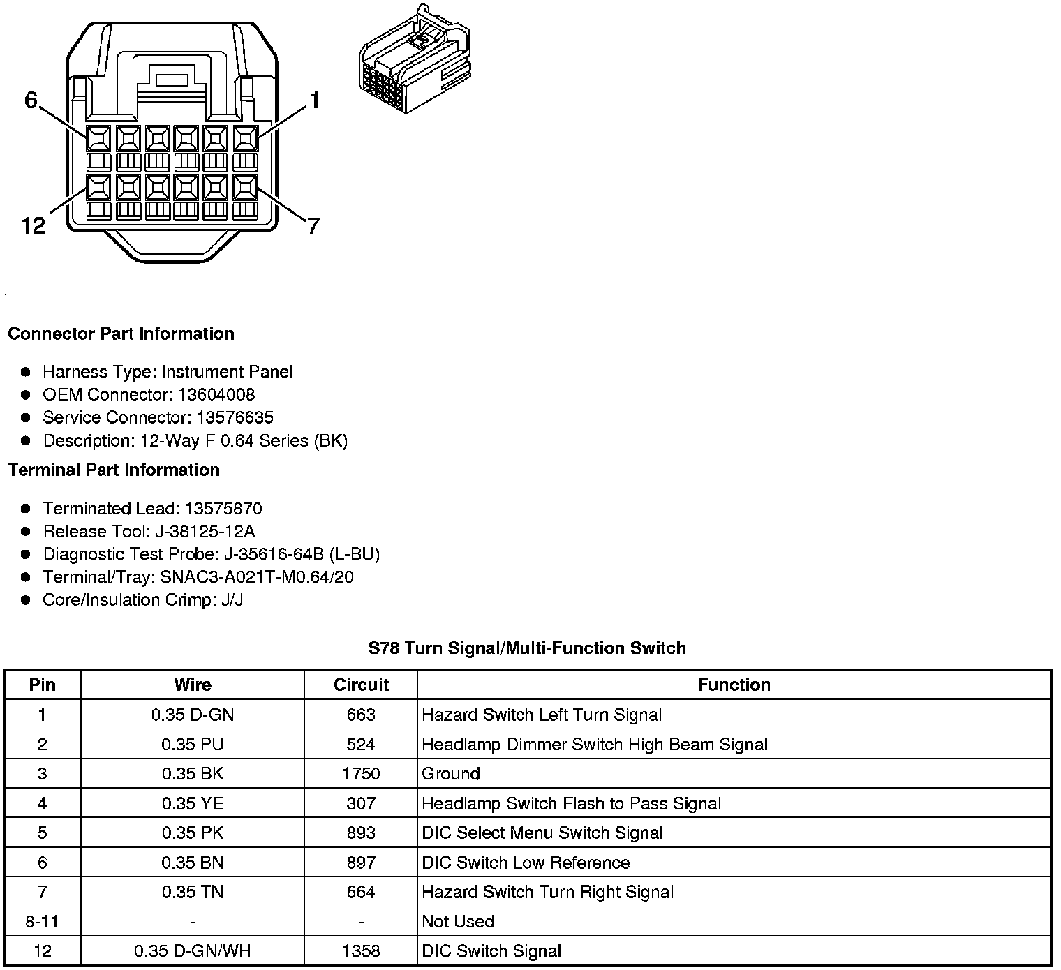 S78 Turn Signal/Multi-Function Switch