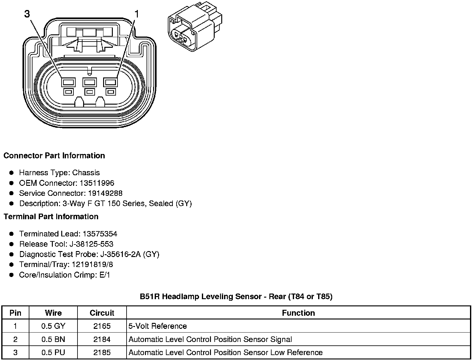 B51R Headlamp Leveling Sensor - Rear (T84 or T85)